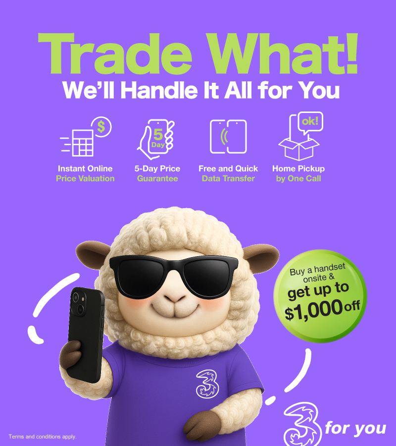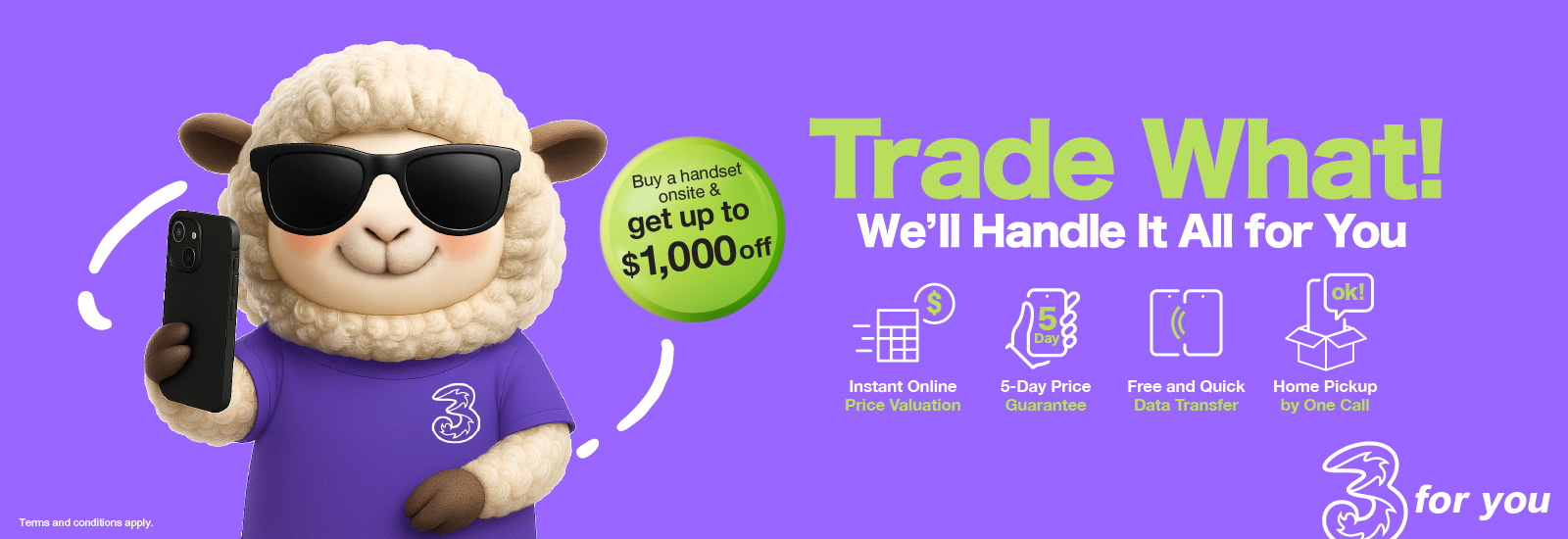 Trade in your old device at any 3Shop and purchase a designated device simultaneously to enjoy an exclusive handset discount. An in-store data transfer service is also available to ensure a seamless upgrade!